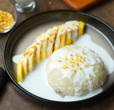 Mango Sticky Rice adalah hidangan penutup klasik Thailand. Terdiri dari ketan yang dimasak dengan santan dan disajikan bersama irisan mangga matang yang manis serta siraman saus santan kental.