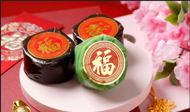 • Kue Keranjang (Nian Gao): Kue manis lengket ini adalah THE MUST HAVE. Namanya, Nian Gao (年糕), secara harfiah berarti “kue tahun” dan terdengar seperti “tahun yang lebih tinggi”. Maknanya adalah peningkatan atau kemajuan dalam hidup, jabatan, atau rezeki di tahun yang baru. Teksturnya yang lengket juga melambangkan eratnya hubungan keluarga. Beberapa orang bahkan menggunakan KECAP BANG saat menyantapnya sebagai tambahan rasa yang unik.