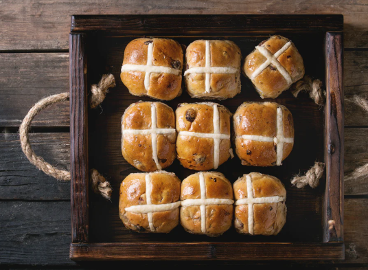 Dalam perayaan Paskah, banyak komunitas Kristen—terutama di Eropa—menyajikan roti khusus seperti hot cross buns atau paska bread. Tanda silang di atas hot cross buns melambangkan pengorbanan Yesus, sementara rasa manisnya menjadi simbol sukacita atas kebangkitan. Di beberapa wilayah, membuat roti Paskah adalah tradisi keluarga yang diwariskan turun-temurun, seolah menjadi pengingat akan nilai pengorbanan, harapan, dan pembaruan hidup.