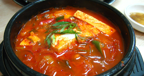 - Sup kental berbasis KIMCHI (fermentasi sawi putih) yang direbus bersama tofu, daging babi atau tuna, dan bumbu GOCHUJANG (pasta cabai fermentasi).