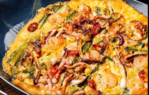 - Pancake gurih yang terbuat dari campuran adonan tepung, telur, daun bawang (pa), dan haemul (makanan laut).