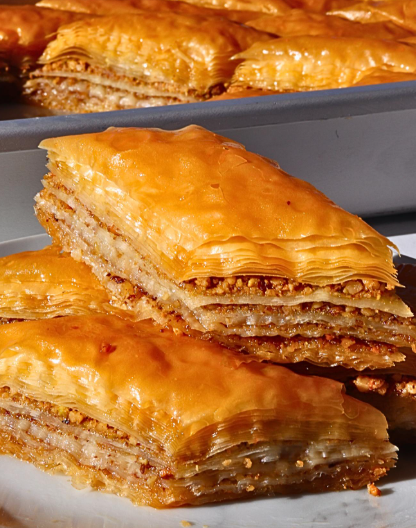 Baklava mungkin jadi salah satu camilan Timur Tengah paling terkenal. Dibuat dari lapisan filo pastry tipis yang diisi kacang cincang lalu disiram sirup madu, baklava punya rasa manis yang kaya dan tekstur renyah-lembut yang bikin nagih. Ketika dimakan sambil menyeruput kopi hitam, rasa pahit dari kopi langsung menyeimbangkan manisnya baklava sehingga nggak bikin enek. Perpaduannya cocok banget buat kamu yang suka manis tapi tetap ingin ada keseimbangan rasa.